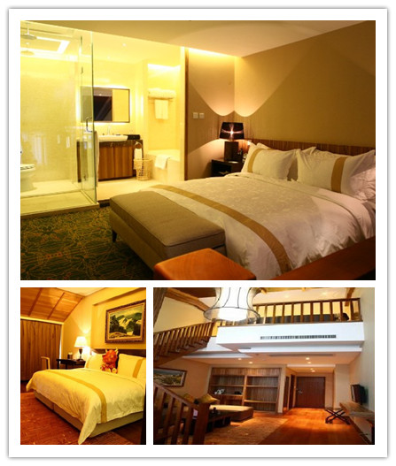 二號(hào)客房建筑面積4800平方米,百余間客房,其中標(biāo)間75間,套房5間,豪標(biāo)6間,三樓設(shè)有20間吊頂房間,設(shè)計(jì)獨(dú)特。
