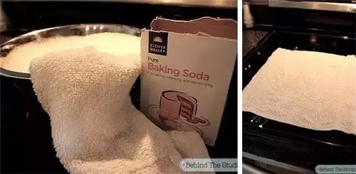 把濕的抹布或者洗碗巾放在微波爐里兩分鐘,然后一定要戴上烘焙用的厚手套,擦擦微波爐,一舉兩得,抹布也消毒了。