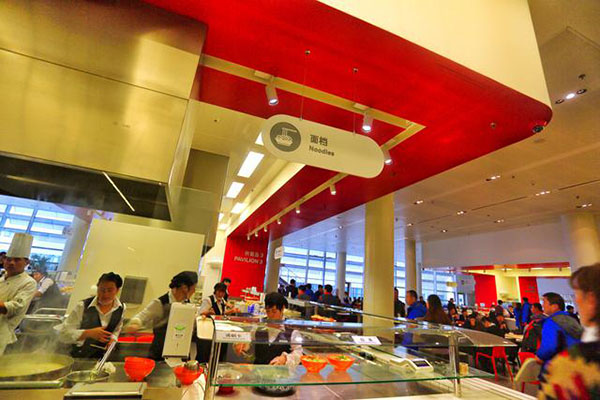 食堂全部是開放式布局,就餐時間是按每個車間分時段就餐。不說是單位食堂你會以為是一個經(jīng)營有序的大型中西餐廳,食堂以獨立的供餐島分布不同的口味區(qū),除了傳統(tǒng)的中西餐外還有面檔和麻辣燙,以及供應(yīng)給穆斯林員工的回民餐飲區(qū),也有供應(yīng)給特殊員工的關(guān)愛餐區(qū),非常人性化。