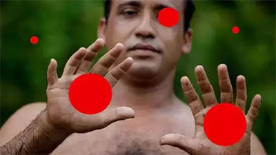 圖中的12指男人是來自古巴的Yoandri Hernandez Garrido,他每個(gè)手都有6個(gè)手指,每只腳也各有6個(gè)腳趾。如果我們一開始不提紅球的事情,相信每個(gè)人都會(huì)馬上注意到這個(gè)奇人的存在。