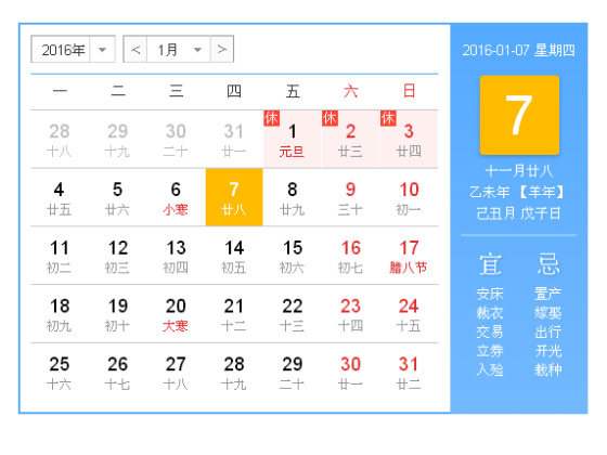 今天是2016年1月7日,星期四。