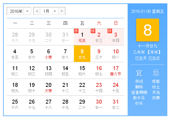 今天是2016年1月8日,星期五。
