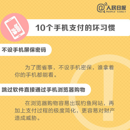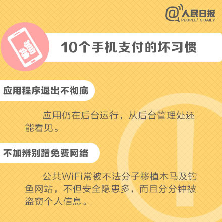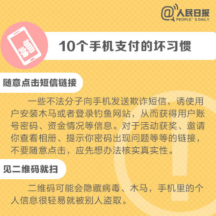 手機給人們生活、娛樂帶來方便的同時,也給我們帶來了安全隱患,使用手機時的一些"壞習慣"一定要改掉,保護好個人網(wǎng)絡賬戶安全,避免不必要的損失。