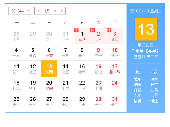 今天是2016年1月13日,星期三。