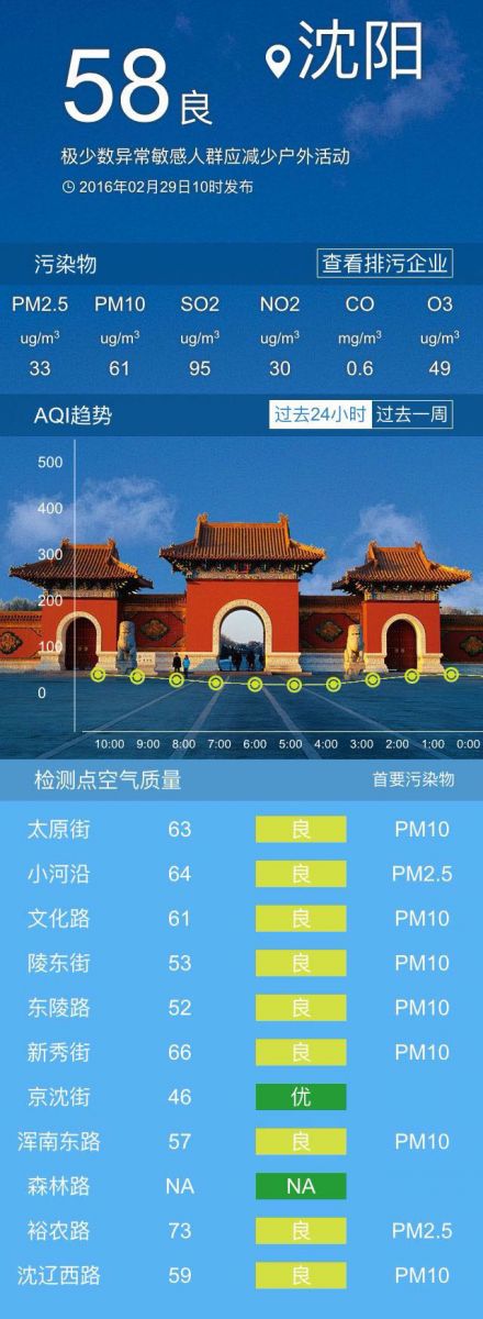 接下來關注未來幾天沈陽的具體天氣:今天白天是個大晴天,西北風3到4級,最高氣溫-2℃。白天最高氣溫在0℃以下的情況在未來一段時間將會變得越來越少;今天夜間最低氣溫-10℃。