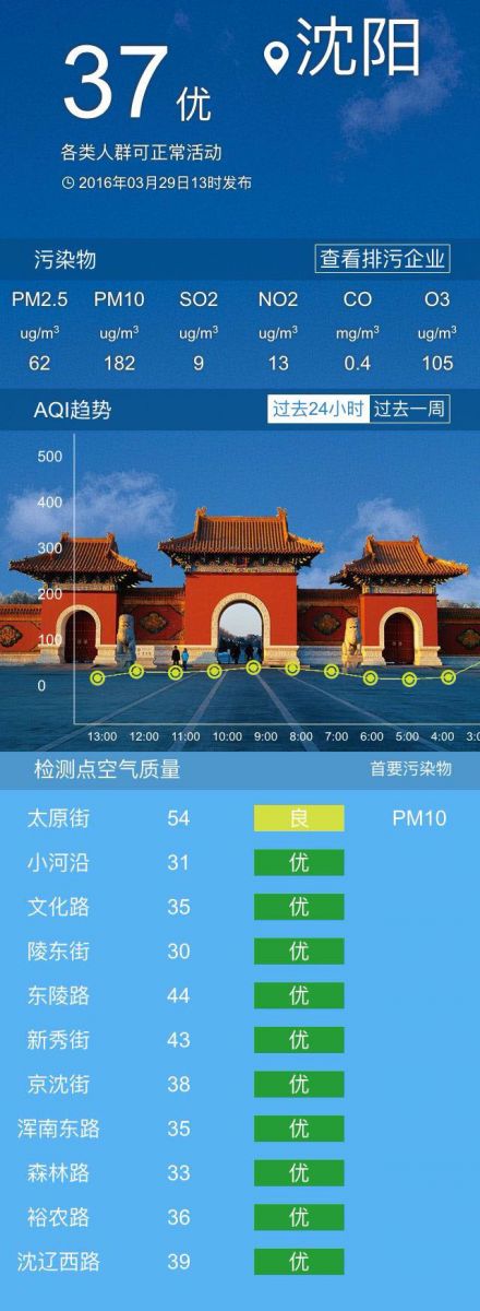 接下來共同關(guān)注沈陽未來幾天的具體天氣情況:本周光臨沈城的冷暖氣團輪流上崗,今天是冷氣團占主導(dǎo),天氣以晴為主,白天最高氣溫為15℃,西北風(fēng)3-4級,空氣質(zhì)量優(yōu);夜間最低氣溫為-1℃。