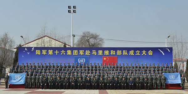 據(jù)了解,這是中國第四次赴馬里執(zhí)行維和任務(wù),此次組建的維和部隊包括一支155人的工兵分隊、一支170人警衛(wèi)分隊和一支70人的醫(yī)療分隊,分別來自某工兵團(tuán)、某機(jī)步旅和沈陽軍區(qū)總醫(yī)院等單位。