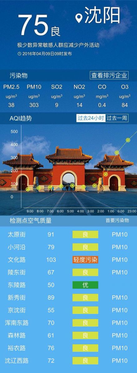 接下來共同關注沈陽未來幾天的具體天氣情況:今天白天以晴朗為主,白天最高氣溫為14℃左右,空氣質量良,北風3-4級;夜間最低氣溫為0℃左右。