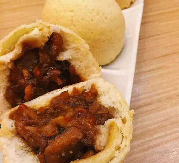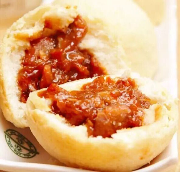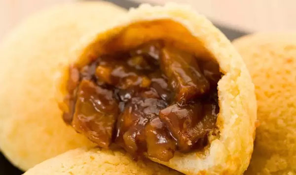 與傳統(tǒng)白嫩的包子做法不同,酥皮焗叉燒包有金黃酥軟的外皮,長得與香港菠蘿包有幾分神似,但里面塞了肉餡,的確又是包子的做法。