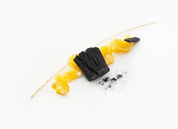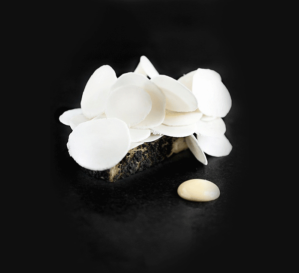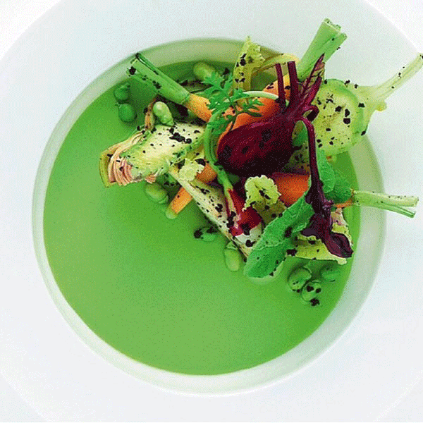 ↑↑↑綠色醬汁打底,點(diǎn)綴紅蘿卜、紫洋薊、碗豆等春季蔬菜的鮮艷色澤,5:5的精致比例,在視覺上完美平衡。最后再撒上黑松露,Bingo上桌!