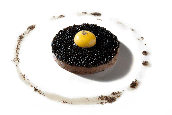 ↑↑↑黃色的蛋芯,黑色的松露,最下層是誘人的韃靼牛肉,對(duì)比鮮明的色彩,完美同心圓,強(qiáng)迫癥患者的福音。