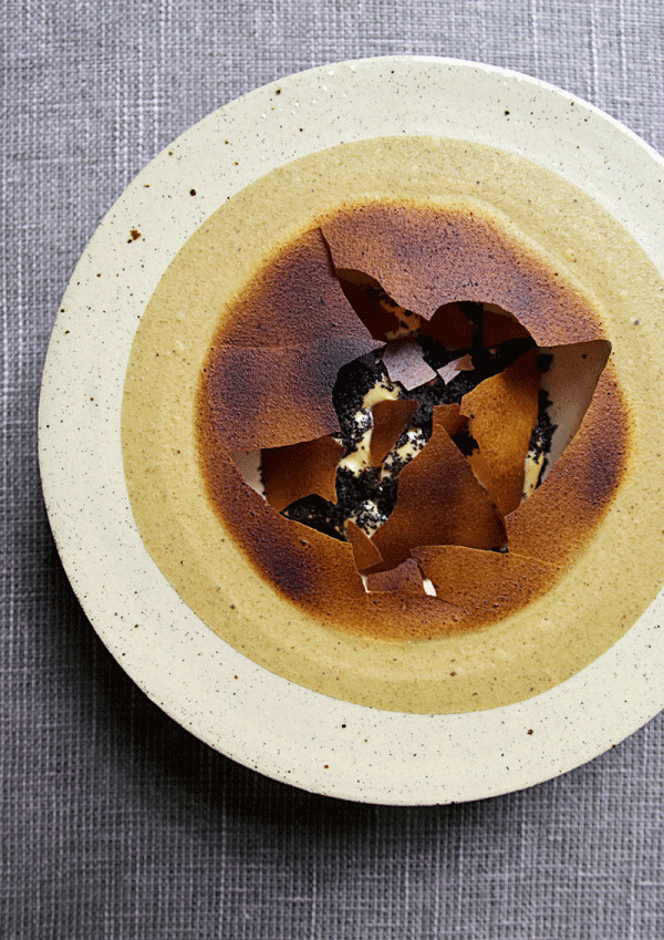 ↑↑↑略帶燒焦感的脆皮,下面是烤過(guò)的榛果和乳酪,脆與柔都在這里了。