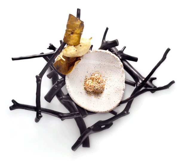 ↑↑↑交錯(cuò)的黑色樹枝,粗糙破損的瓷器餐具,呼應(yīng)著盤中看似簡(jiǎn)單卻工序復(fù)雜的料理,我們吃的不是食物,是情懷!
