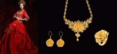 在中國傳統(tǒng)文化里,黃金是代表家庭富足的吉祥之物,因此黃金就自然而然成了婚嫁的必備品。在傳統(tǒng)婚嫁習(xí)俗中的"三金"一般指的是:金項(xiàng)鏈,金耳環(huán),金戒指。但隨著時代的發(fā)展和生活水平的提高,"三金"逐漸演變成了"五金",后來的"五金"指的是項(xiàng)鏈、耳環(huán)、戒指、手鐲和腳鏈。