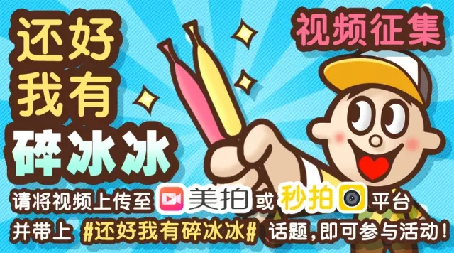 2.活動規(guī)則:在美拍或者秒拍上傳以#還好我有碎冰冰#為主題的短視頻并帶上#還好我有碎冰冰#話題即可參與活動,旺仔將選出最有創(chuàng)意的前3名及10名優(yōu)秀作品。