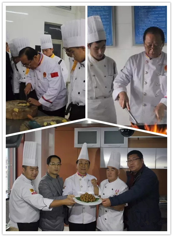 劉敬賢大師走進實訓課堂,親自指導學生刀工技法及烹調(diào)技藝,叮囑同學們學習廚藝要有耐心、恒心,掌握技巧,反復練習。劉敬賢大師親自為2015級敬賢廚藝西餐班演示扒素魚翅、干炸丸子、?大蝦、扒白菜、蔥燒遼參五道經(jīng)典名菜。同學們觀摩了大師的經(jīng)典名菜,品嘗了大師親手制作的菜品,贊嘆不已。同學們得到劉敬賢大師的技藝真?zhèn)鳎斋@很大,紛紛表示希望學校能夠為他們創(chuàng)造更多的名師進校活動。