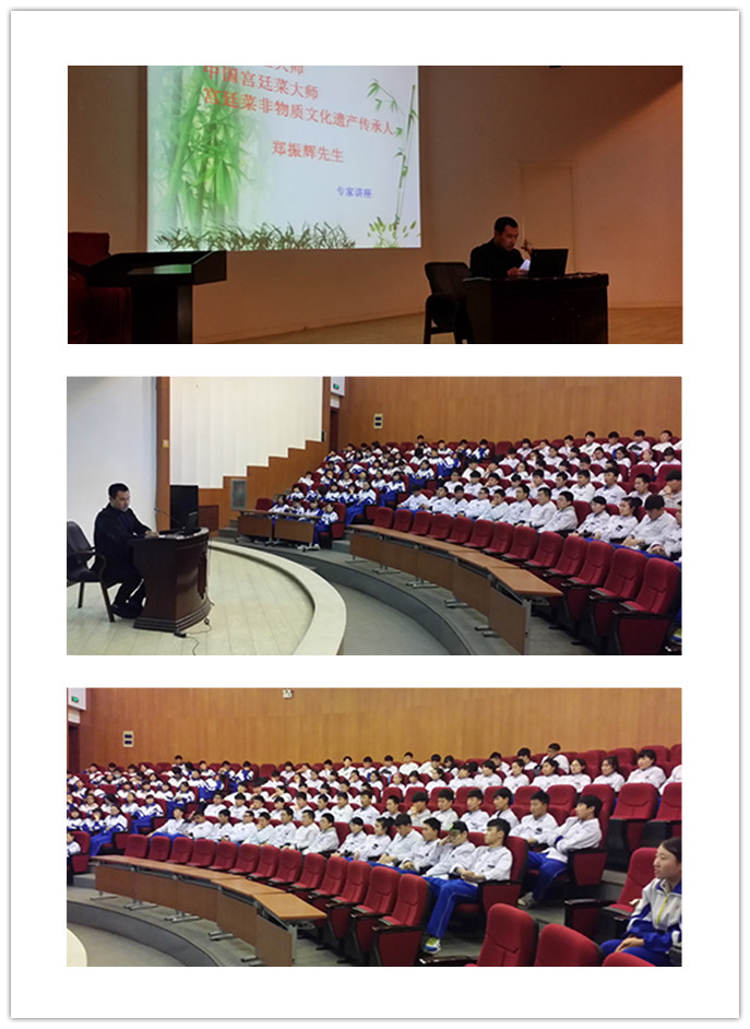 學(xué)校定期舉辦烹飪專家講座,中國烹飪大師、宮廷菜大師、沈陽璟星酒店行政總廚鄭振輝先生來我校進(jìn)行"宮廷菜演繹"及"酒店廚房六常管理法"的講座。我校烹飪專業(yè)全體教師及在校生積極參與本次活動。通過本次活動全體教師和學(xué)生收益頗豐,不僅開拓了視野,豐富了專業(yè)知識,個人專業(yè)素質(zhì)也得到了顯著提高。達(dá)到了預(yù)期的效果,取得了廣泛的好評。