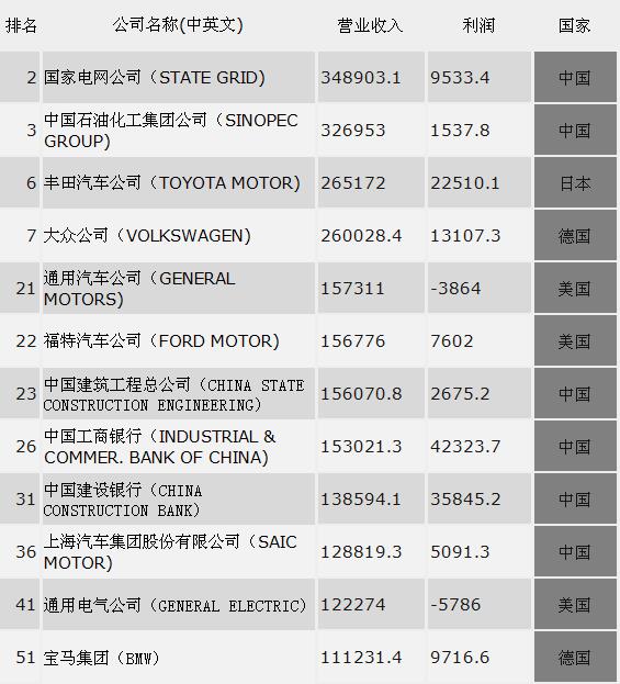 沃爾瑪連續(xù)第五年成為全球最大公司,它和三家中國企業(yè)——國家電網(wǎng)、中石化和中石油繼續(xù)分列榜單前四位,位次沒有變化。殼牌石油上升至第五位,將豐田汽車擠至第六位。