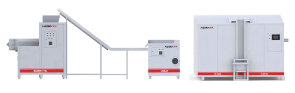 1噸廚余垃圾進(jìn)入餐廚垃圾一體化處理后,先進(jìn)行固液分離及減量處理,再進(jìn)行油水分離.然后進(jìn)行高溫降解去掉水分,最終剩下150公斤左右的殘?jiān)鴾p量比例在80%左右。剩余20%的殘?jiān)鸵逊蛛x出來的廢棄食用油脂,進(jìn)一步生成有機(jī)肥料和生物柴油。