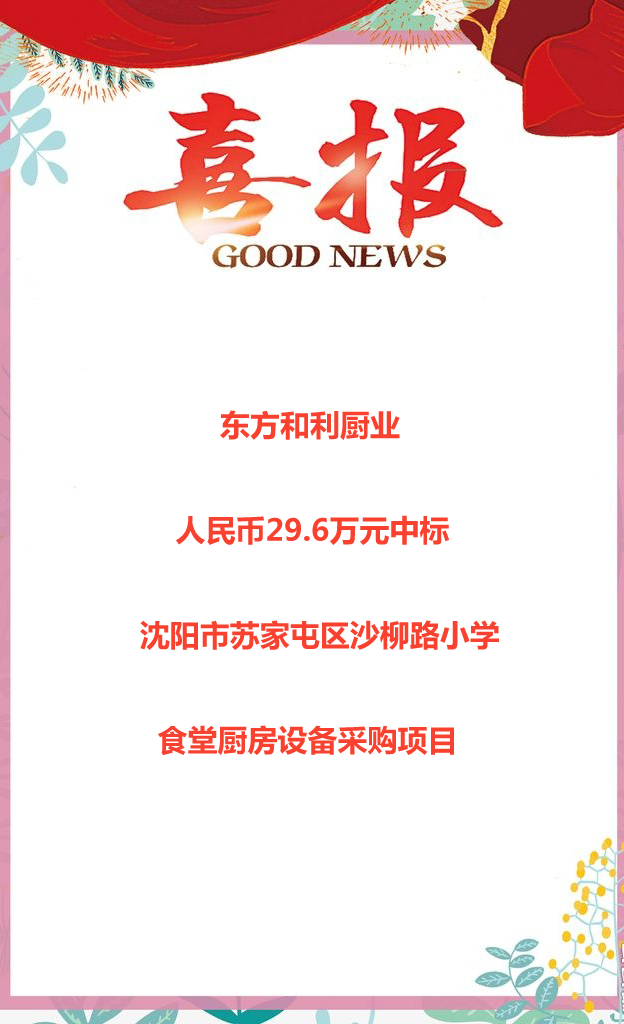喜報:東方和利廚業(yè)中標蘇家屯沙柳路小學食堂廚房設備采購項目