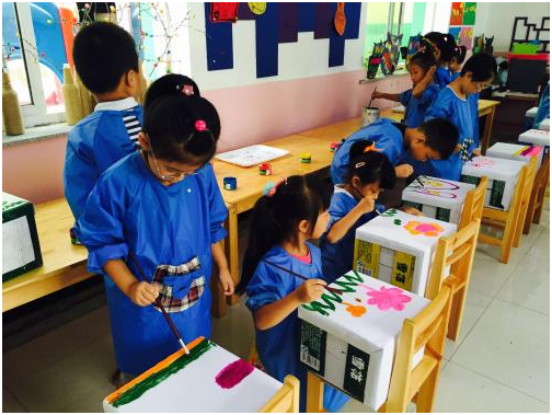 在活動整合上,打破領(lǐng)域間的壁壘,讓美術(shù)活動的觸角伸展到各個領(lǐng)域,成為領(lǐng)域整合的紐帶。如美術(shù)活動中的"創(chuàng)意繪本"、"伴我成長連環(huán)畫"、"小小加工廠"等內(nèi)容,將美術(shù)巧妙的同語言、社會、健康等領(lǐng)域結(jié)合,讓孩子們在均衡發(fā)展的同時體味到成功的快樂。