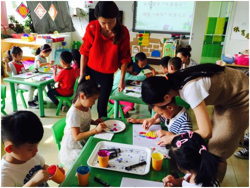 在活動項目上,強化原有畫、折、制作等內(nèi)容,并新增欣賞、水墨、色彩、線描、沙畫等內(nèi)容,每種內(nèi)容又結(jié)合實際進行專項的學習與研討,讓教師們明確每種活動的目標是什么,該如何高效的進行。