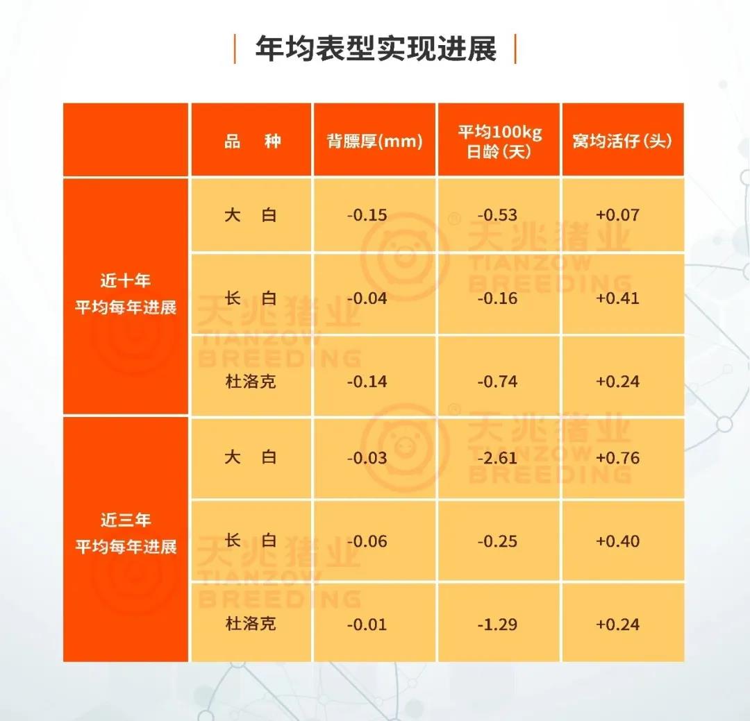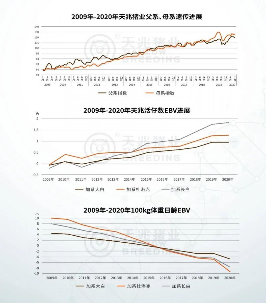 ☉2009年—2020年天兆豬業(yè)遺傳進展成果