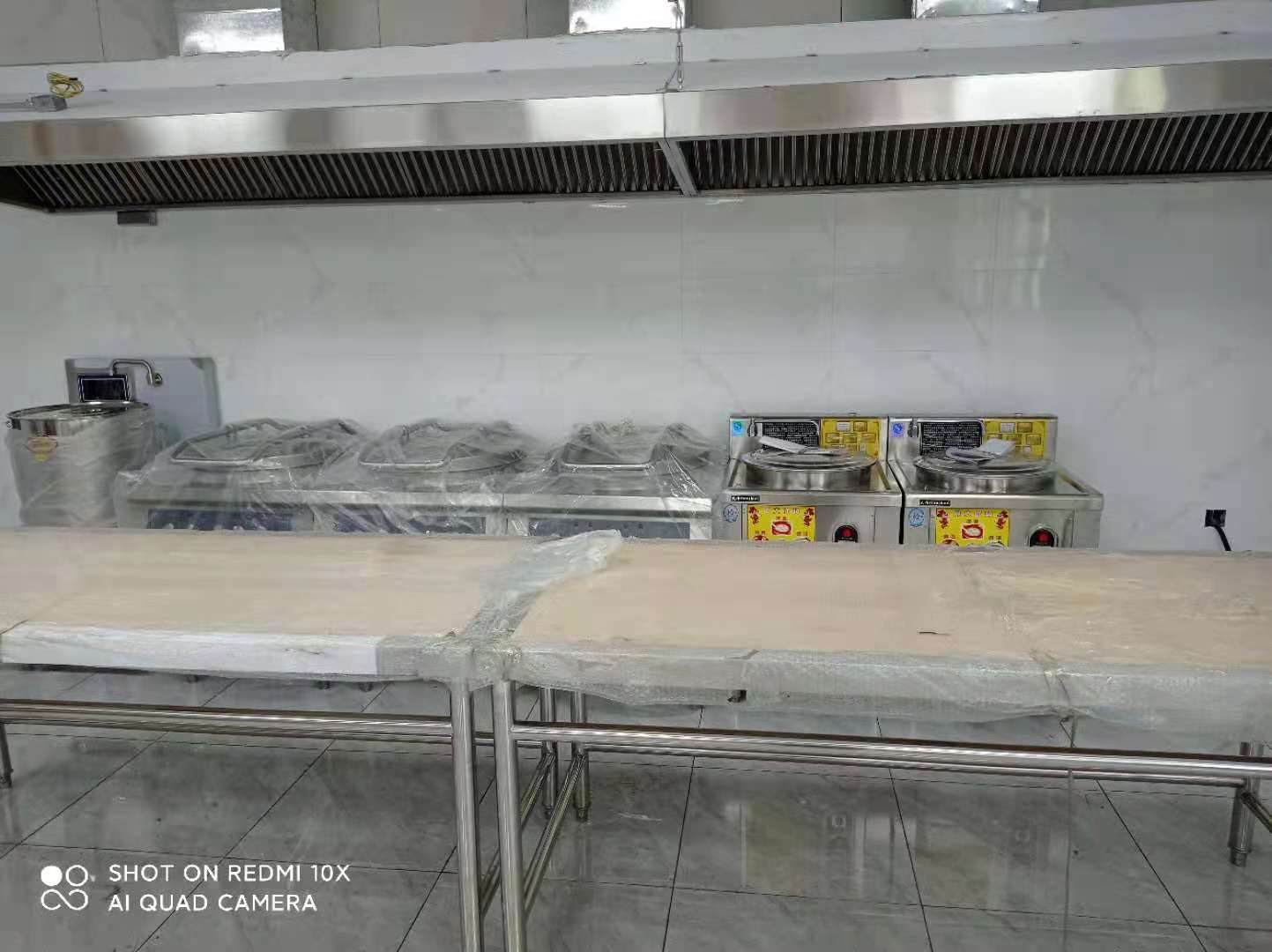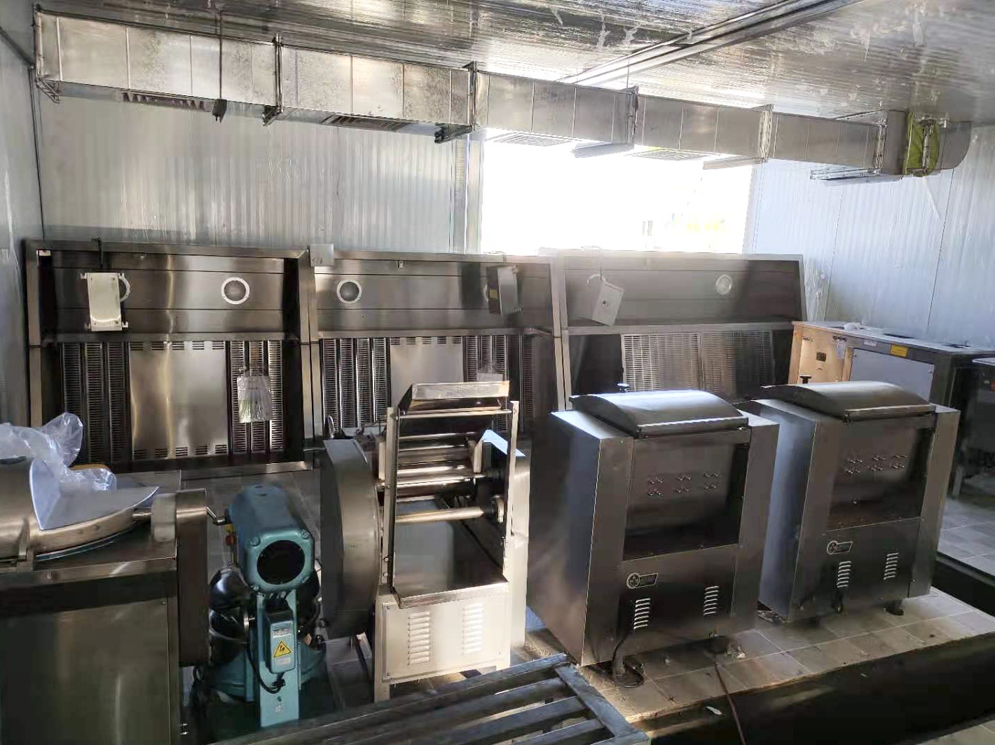 部分設(shè)備安裝完畢;異形工作臺(tái)、調(diào)料臺(tái)生產(chǎn)中