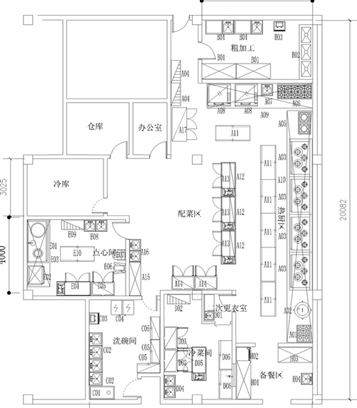 廚房的另一條主線是冷庫、點心間、洗碗間和冷菜間。這些區(qū)域的面積和要求,食藥監(jiān)都有相應(yīng)的強制性規(guī)定,設(shè)計時不僅要滿足行業(yè)的強制要求,也要考慮到其中的功能關(guān)系,方便廚房師傅就近取材。