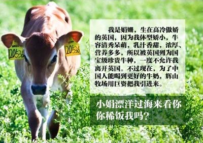 輝山乳業(yè)牧場(chǎng)已經(jīng)擁有超過18萬頭進(jìn)口奶牛,其中有只特別的娟姍小牛要降生了,但牛寶寶還沒!有!名!字!誰愿意幫它?輝山乳業(yè)在最霸氣、最創(chuàng)意的名字中進(jìn)行海選投票,如被選中就有機(jī)會(huì)參觀輝山牧場(chǎng)并與萌牛寶寶見面哦!