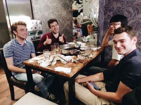 全家摩拳擦掌等著看新姑爺出丑,看著那一大包青花椒倒到全紅的鍋里,我為老公捏了一把汗,第一口牛肉進(jìn)嘴他大呼"OMG it tastes amazing",然后開始了和我爹觥籌交錯(cuò)并嘴不停蹄火鍋之旅……