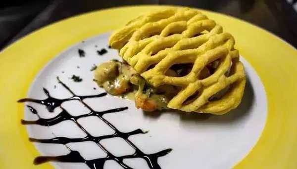 扇貝、明蝦、法式鮮奶油制成的海鮮糕點,輔以香蔥調(diào)味