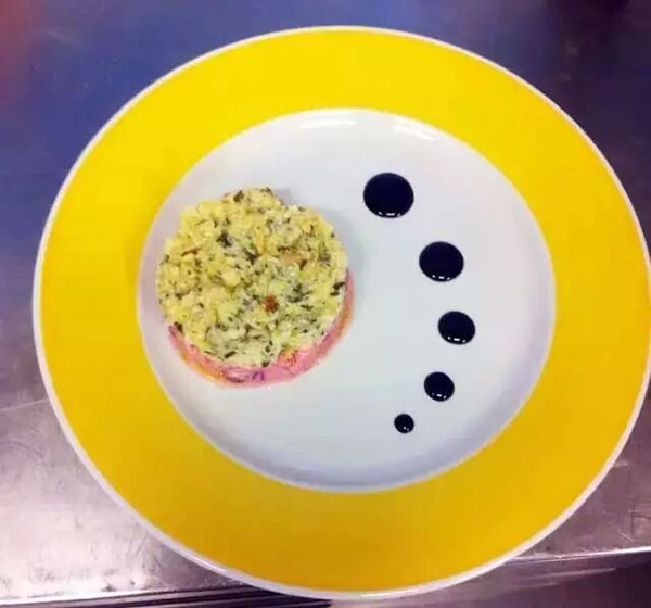 土豆、甜菜根、蟹肉與青檸混合,并配以少量摩德納香醋
