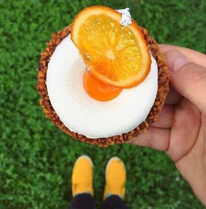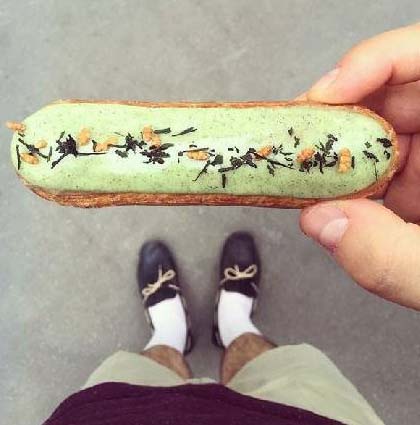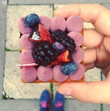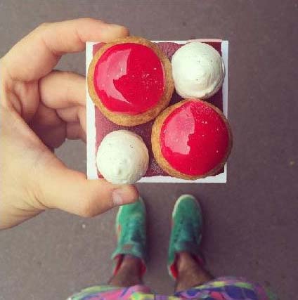 有一天,他做完甜品準(zhǔn)備拍照時,突然發(fā)現(xiàn),今天的鞋子和甜品好配啊;