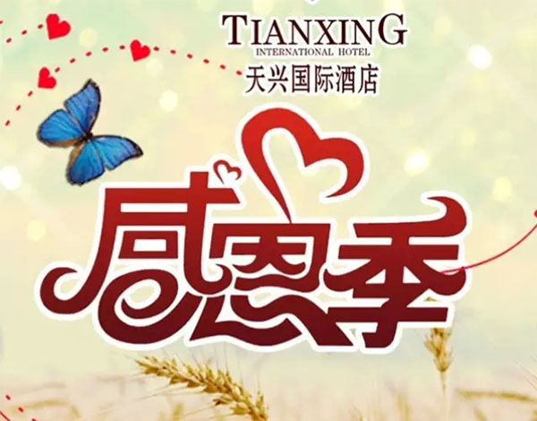 2015年還有58天就結(jié)束了,在過去的一年里,你有多少感謝的話語沒有機(jī)會說出來?有多少人幫助過你,你卻來不及說句"謝謝"?在11月份這個(gè)感恩季,跟隨天興國際酒店行動起來!