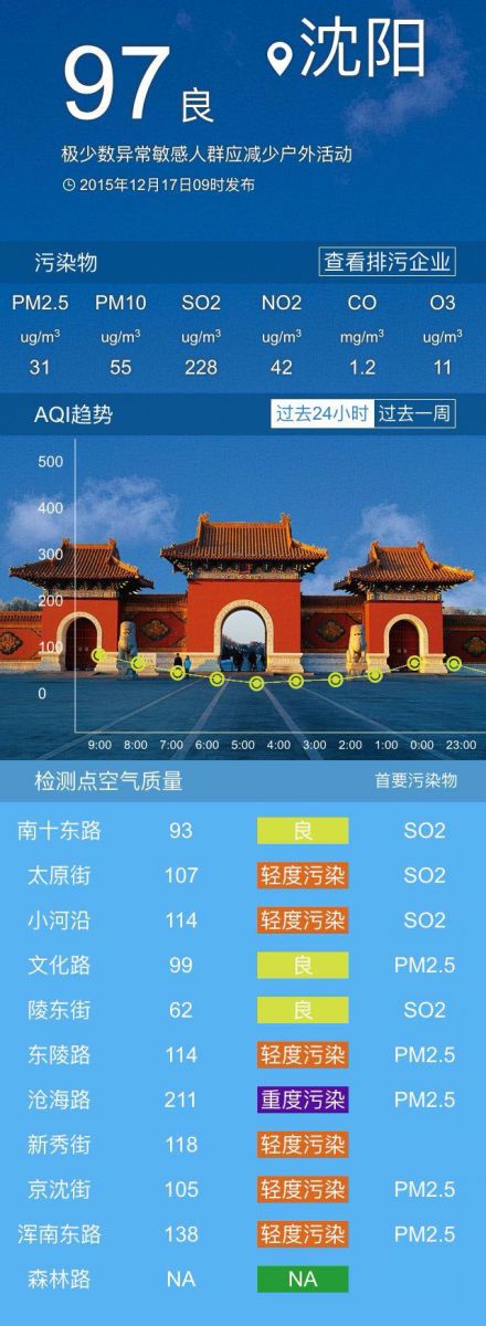 今天白天沈陽(yáng)冷空氣勢(shì)力減弱,冰冷的空氣變得平靜下來(lái),或多或少會(huì)影響到污染物的擴(kuò)散和稀釋,但并不至于會(huì)出現(xiàn)討厭的霧霾。